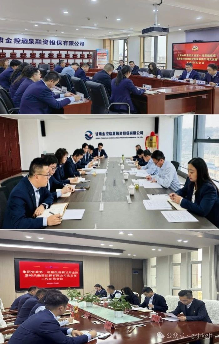 根據集團黨委巡察工作統一部署,集團黨委第一、第二巡察組于近期分別進駐金控酒泉、臨夏、嘉峪關擔保黨支部開展巡察,被巡察單位分別組織召開巡察進駐動員會。會前,各巡察組組長主持召開與被巡察黨組織負責人的見面溝通會,傳達集團黨委巡察工作有關精神和要求,通報巡察任務和工作安排,聽取被巡察黨組織負責人意見。會上,各巡察組組長作動員講話,對學習貫徹習近平總書記關于巡視工作的重要論述,扎實開展巡察工作提出要求。