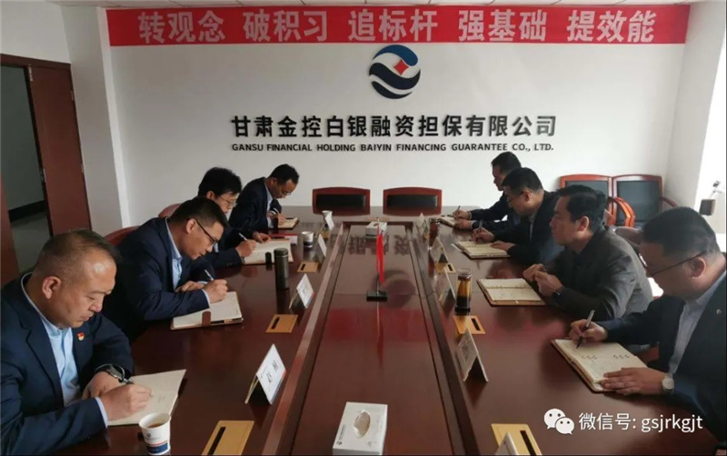 4月15日,金控臨夏擔(dān)保董事長郭文俊一行到金控白銀擔(dān)保開展業(yè)務(wù)交流,金控白銀擔(dān)保董事長羅繼林主持召開座談會。