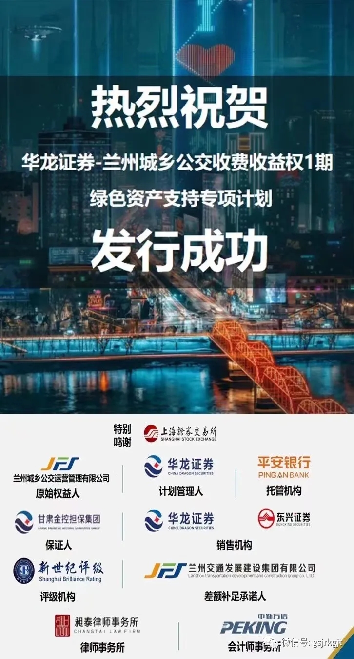 日前,由金控擔保作為保證人、華龍證券擔任計劃管理人的“蘭州城鄉(xiāng)公交收費收益權1期綠色資產支持專項計劃”成功發(fā)行,這也是甘肅首單綠色資產支持專項計劃。
